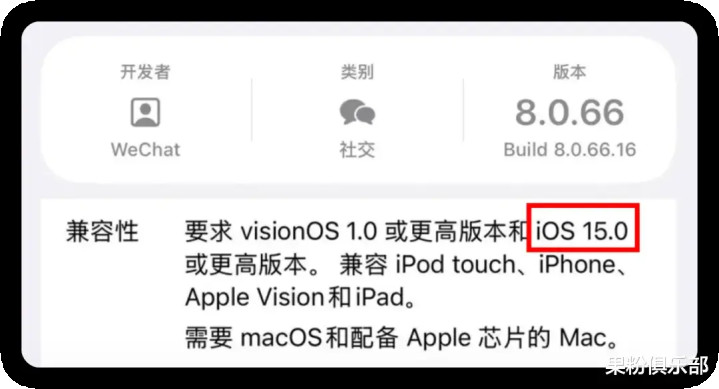 那就是 iOS 微信 8.0.66 测试版,突然将最低兼容系统从 iOS 14 提升至了 iOS 15。