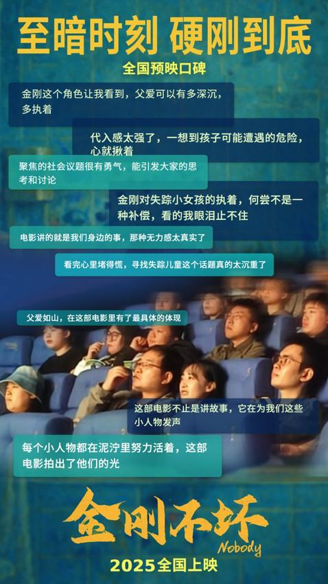 预映结束后,观众的反馈集中在影片所营造的真实感与情绪穿透力上。一位观众在映后表示:“金刚的父爱很笨拙,却在至暗时刻最有力量。那些看似莽撞的举动,其实是他最真切的守护。” 另一位观众则说:“影片让我想起身边的父亲,那种沉默不语却在关键时刻硬抗的姿态,让人特别动容。” 这种情感投射,让影片在社会话题之外,更成为观众代入自身经历的情绪出口。